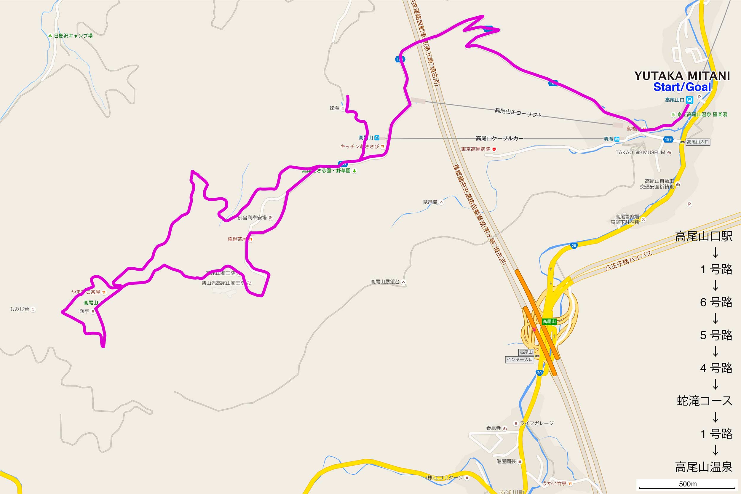 | 2016.07.06 高尾山口駅→京王高尾山温泉・極楽湯 10.1km route |
