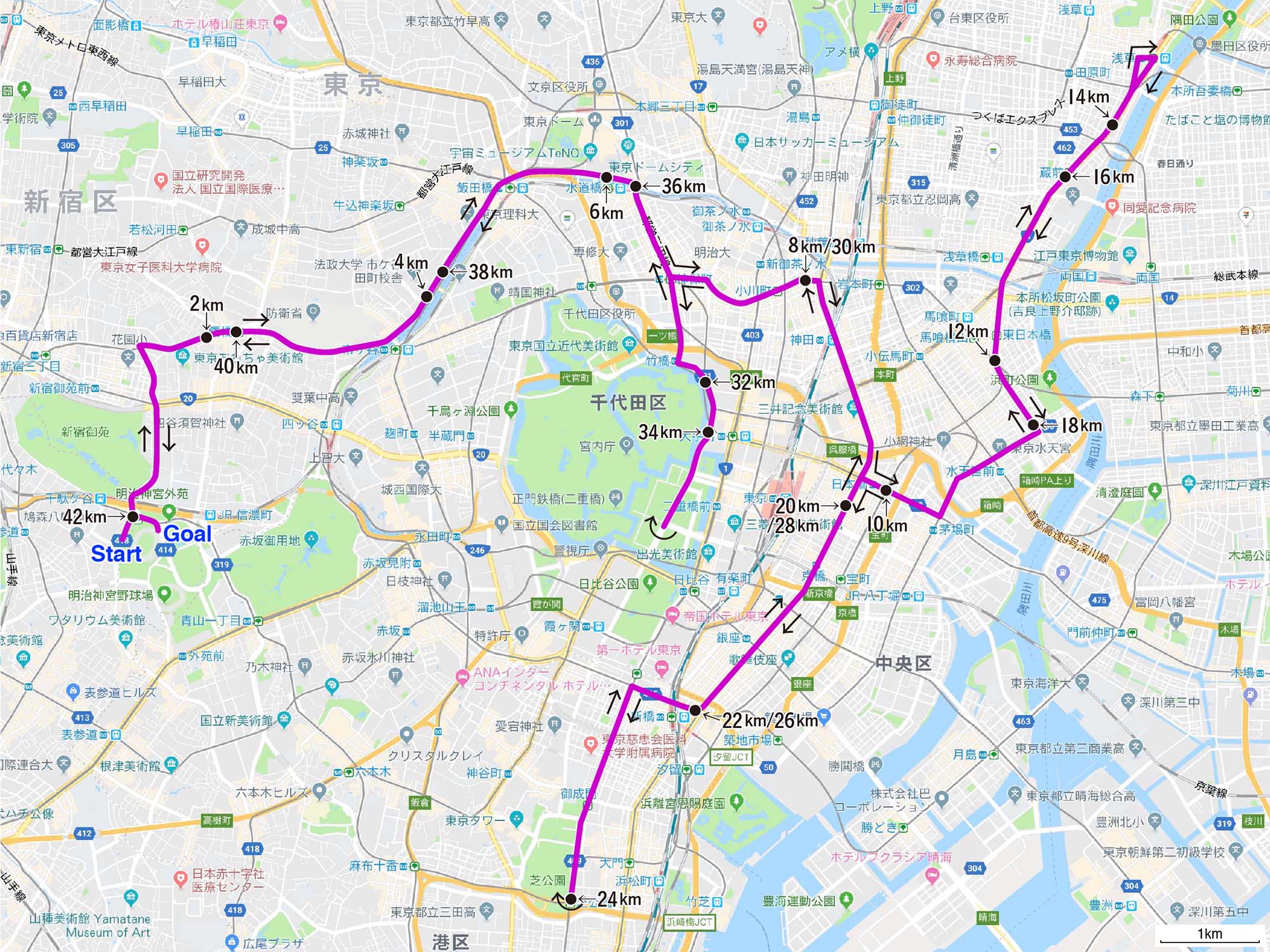| 2019.02.26 新国立競技場→浅草→芝公園→日本橋→神保町→二重橋前→新国立競技場 42.2km route |