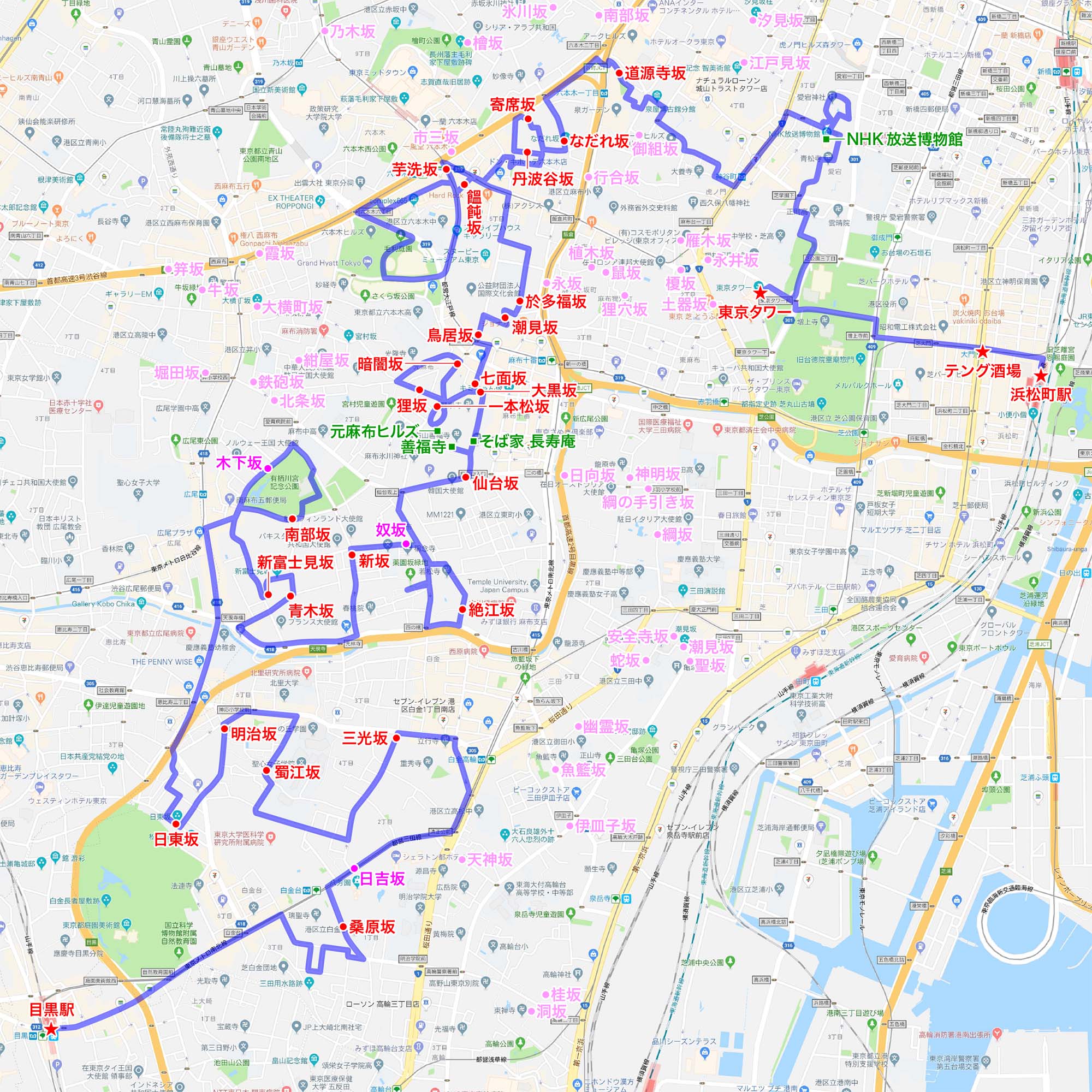 | 2018.02.24 目黒駅→東京タワー→浜松町駅 21.4km route |