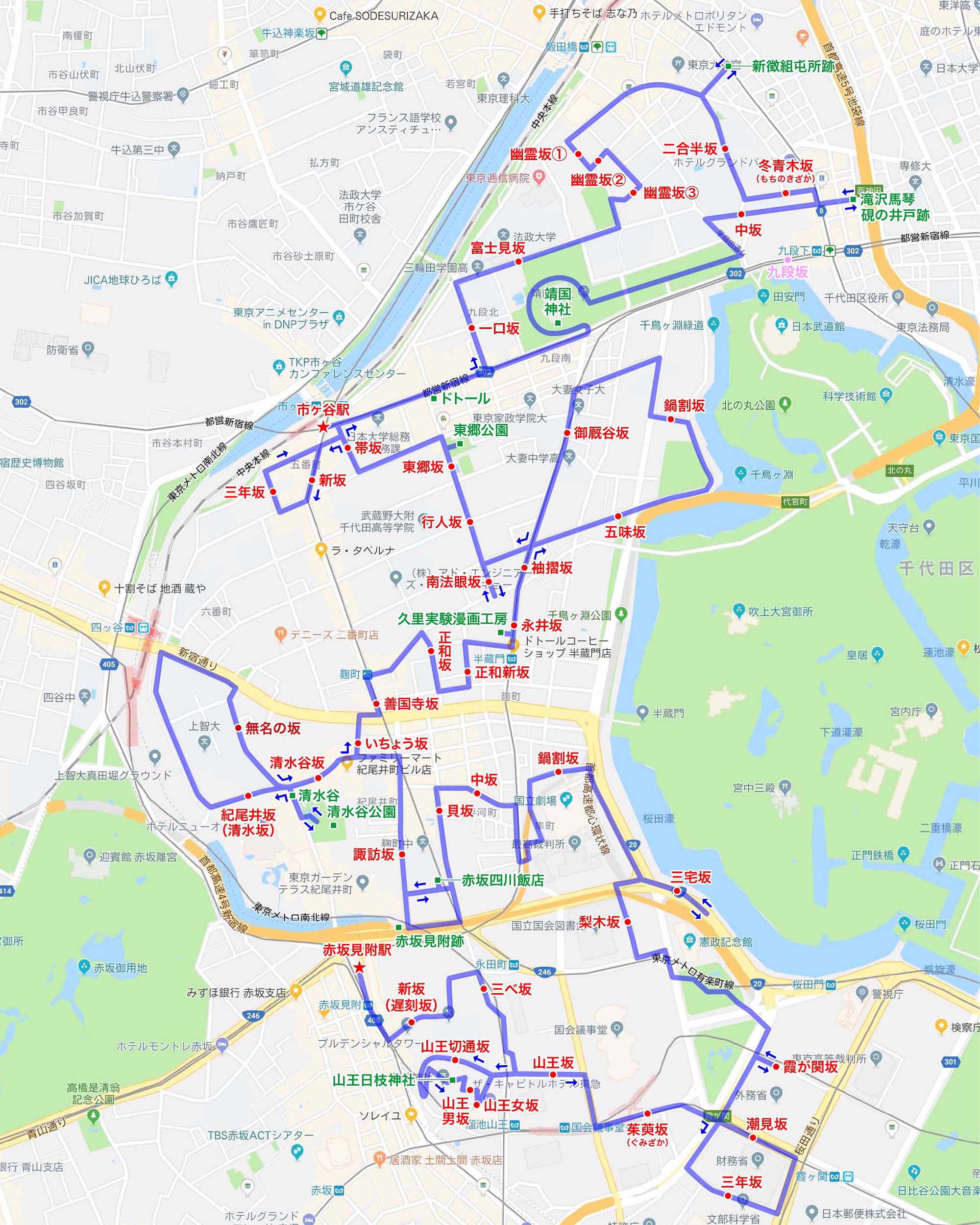 | 2018.05.02 赤坂見附駅→市ヶ谷駅 21.5km route |