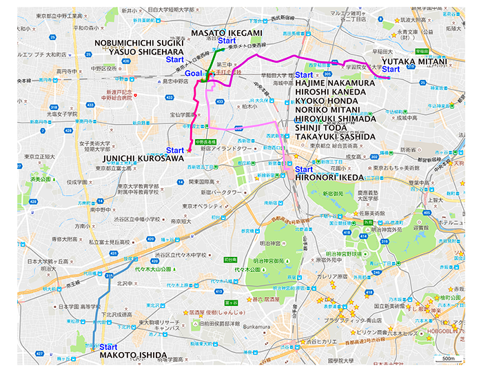 | 001 池上正人 | 落合駅→東中野・圓角邸 0.8km | route | 002 黒澤淳一 | 中野区本町二丁目→東中野・圓角邸 1.7km | route | 003 圓角秀世 | 東中野・圓角邸→東中野・圓角邸 | 004 三谷 豊 | 早稲田駅→東中野・圓角邸 4.4km | route | 005 中村 肇 | 東中野駅→東中野・圓角邸 0.3km | 006 杉木伸通 | 都営東中野駅→東中野・圓角邸 0.3km | 007 金田 博 | 東中野駅→東中野・圓角邸 0.3km | 008 重原保男 | 都営東中野駅→東中野・圓角邸 0.3km | 010 圓角陽子 | 東中野・圓角邸→東中野・圓角邸 | 011 本田京子 | 東中野駅→東中野・圓角邸 0.3km | 012 三谷紀子 | 東中野駅→東中野・圓角邸 0.3km | 013 嶋田寛行 | 東中野駅→東中野・圓角邸 0.3km | 014 戸田伸二 | 東中野駅→東中野・圓角邸 0.3km | 015 指田隆行 | 東中野駅→東中野・圓角邸 0.3km | 016 石田 誠 | 世田谷区代田四丁目→笹塚駅・東中野駅→東中野・圓角邸 2.6km | route | 020 池田博範 | 新宿駅→東中野・圓角邸湯 4.2km | route |