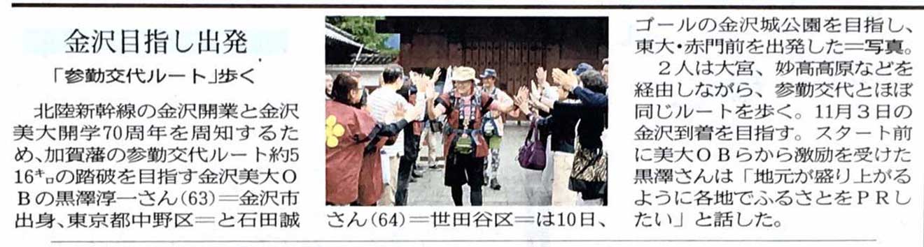 いよいよ本日10月10日〜11月3日、東大赤門(旧加賀藩上屋敷)から金沢城に向けて参勤交代の道(旧中山道、追分から北國下街道)を歩きます。我が母校である「金沢美術工芸大学」開学70周年/石川県人会連合会結成60周年/北陸新幹線開1周年を祝っての、519kmウオーキングで秋の日本列島の背骨を横断。さぁ〜、何が待ち構えているか…。皆さん応援をよろしくお願いいたします。