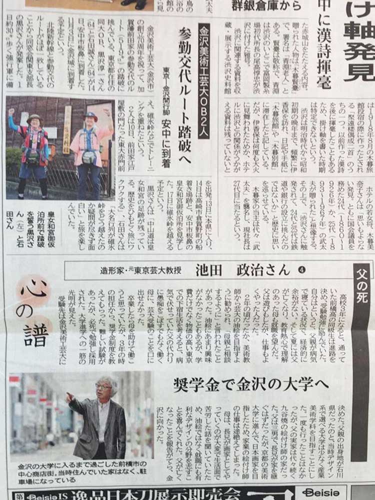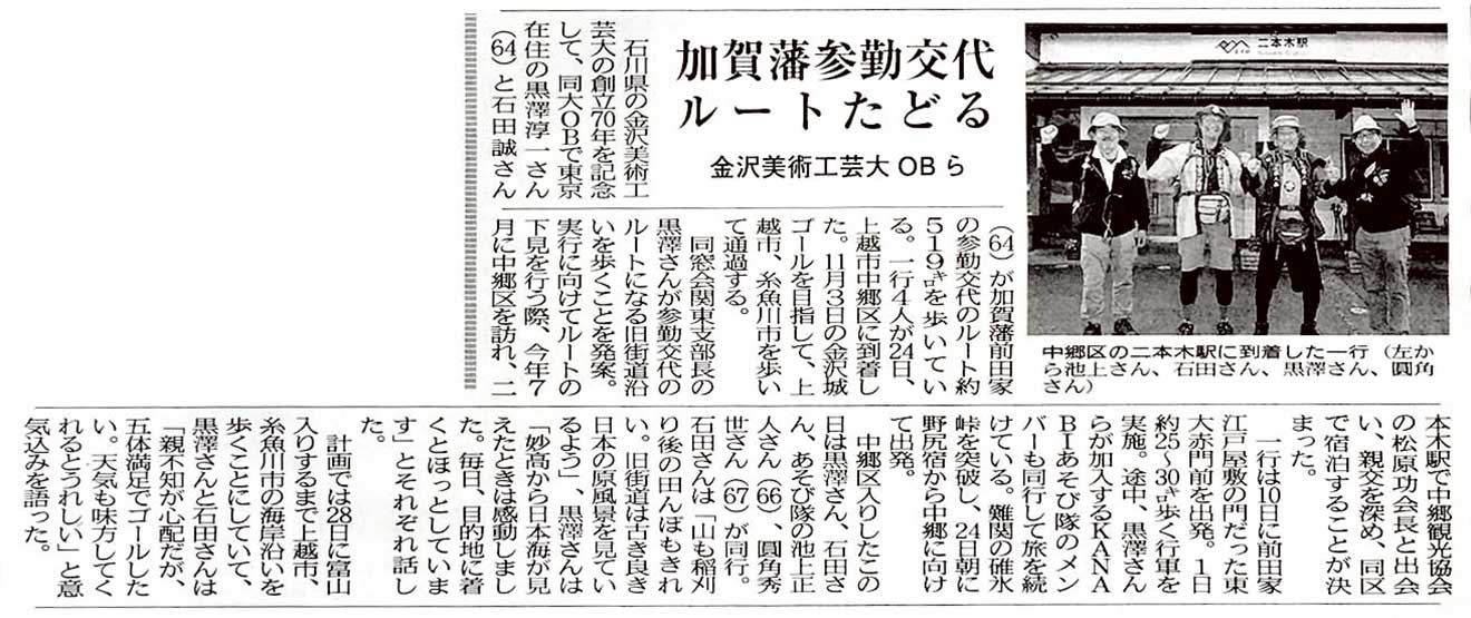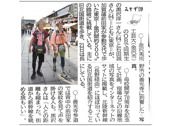 8:30 ファミマで北陸中日新聞を買う。昨日の山本拓海記者の記名記事が載っていた。「参勤交代の旅 挑む2人 あす金沢到着へ 高岡入り」の見出しが。有り難い。
