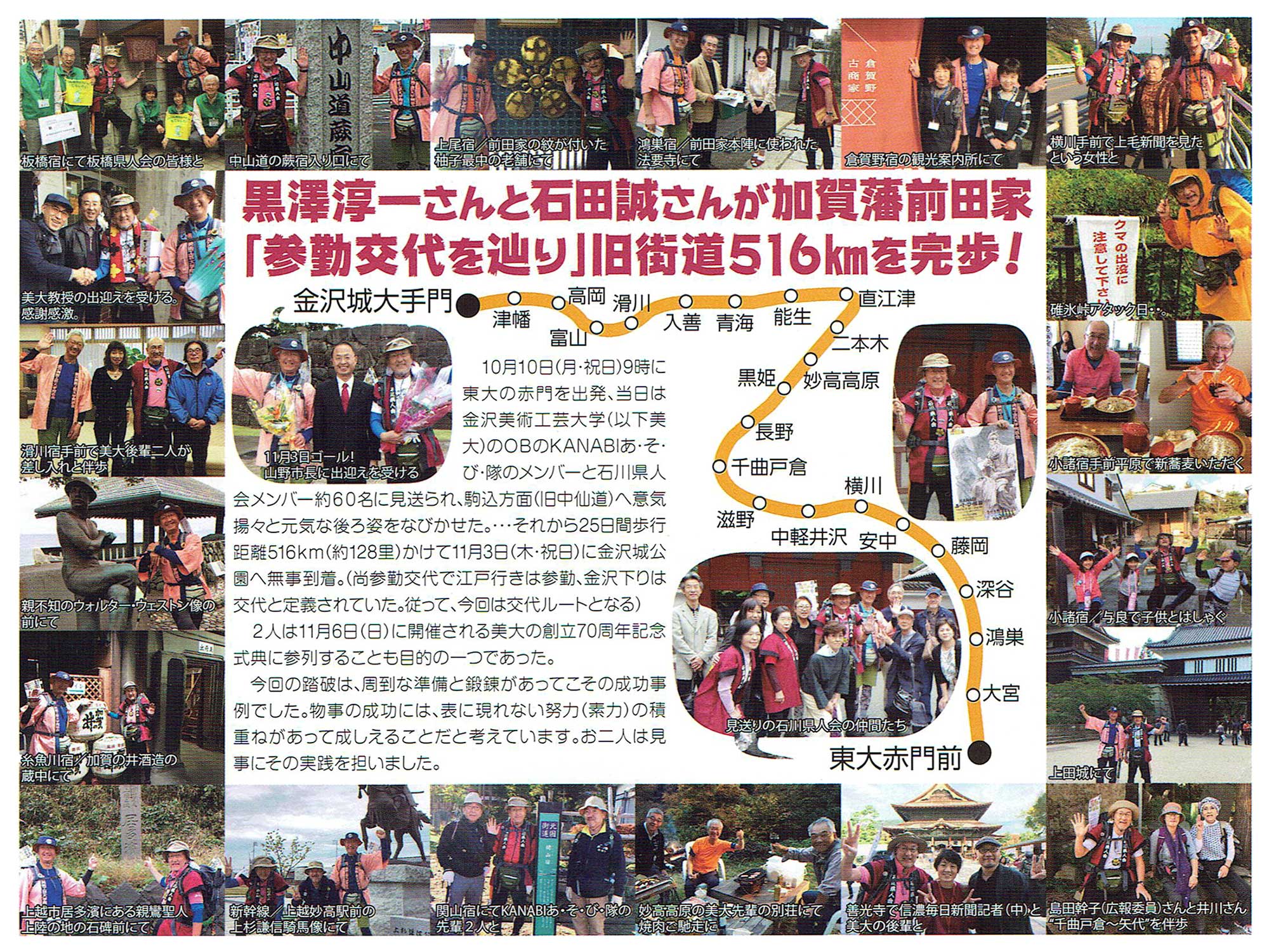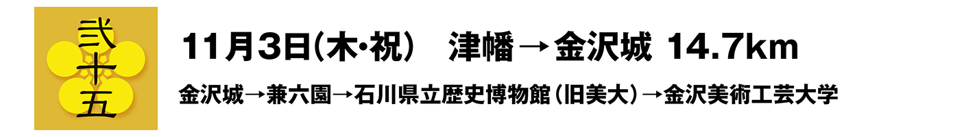 ★黒澤:10月10日9:00に東大赤門(加賀藩上屋敷)を出発し、11月3日14:30に金沢城大手門に無事に到着しました。この25日間、応援頂いた皆様に心より御礼と感謝を申し上げます。ありがとうございました。