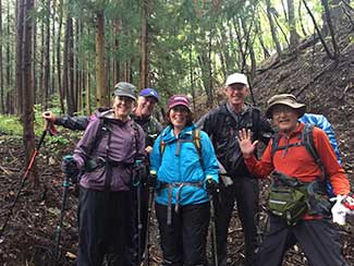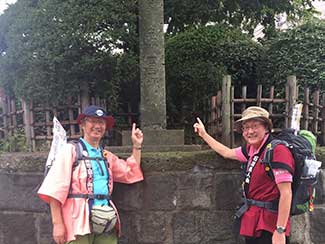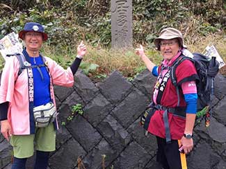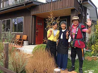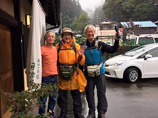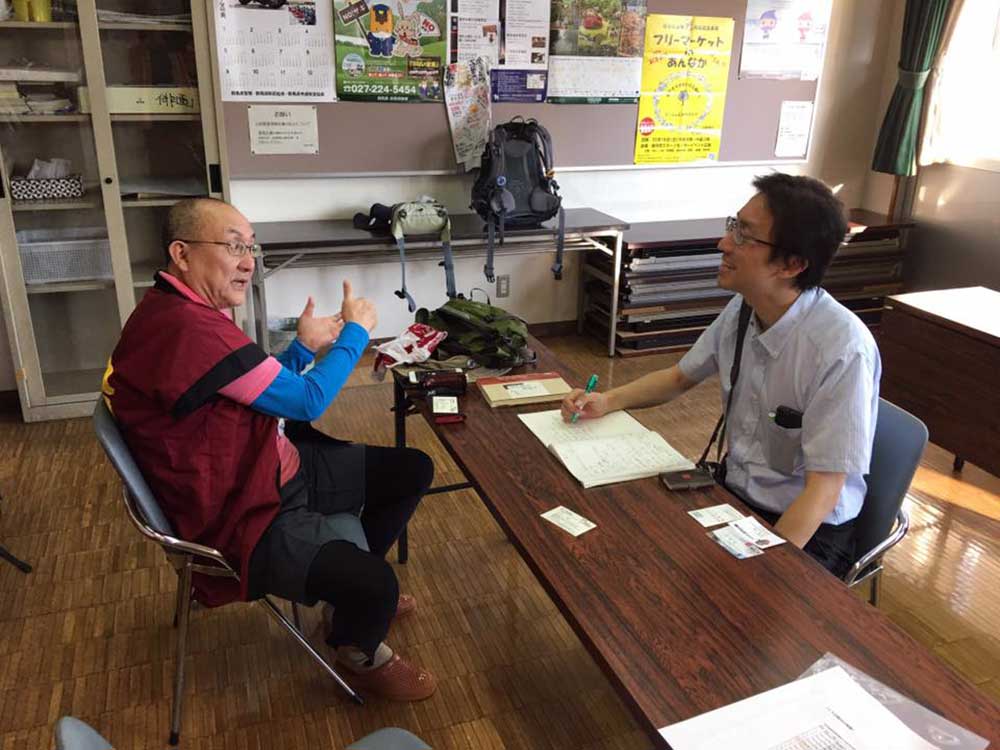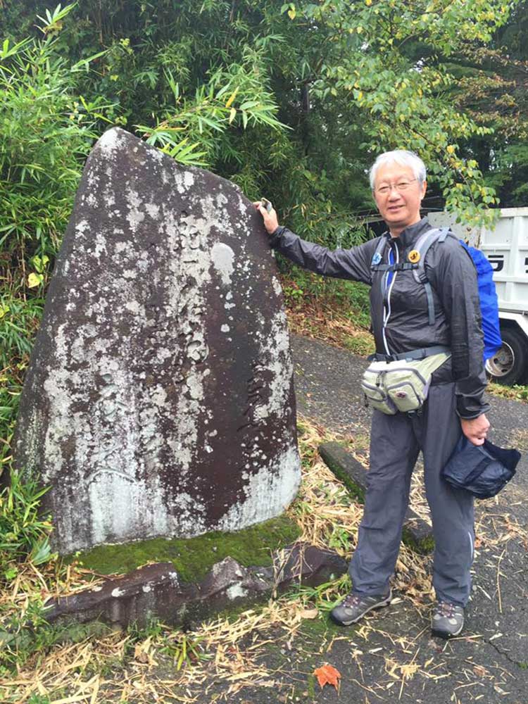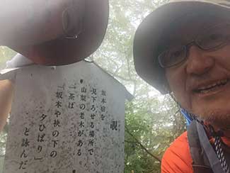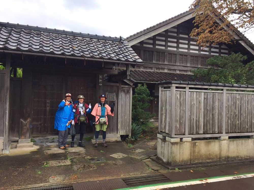 12:30 小坂南の北陸銀行前で旧街道を守る会の皆さんと北陸中日新聞の田島記者とが出迎えて頂く。国道395号線から再び旧道に入り民家でお抹茶と饅頭を頂く。疲れた身体にお茶が染み込むのが解る。お茶の効能は凄い。元気回復。お代わりを頂く。太陽が再び現れ感謝。その時、あっ!!てっきり会のメンバーのおばさんかと思ってたら美大バレー部先輩の村上さんとビート先輩だった。失礼しました(苦笑)。