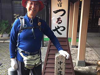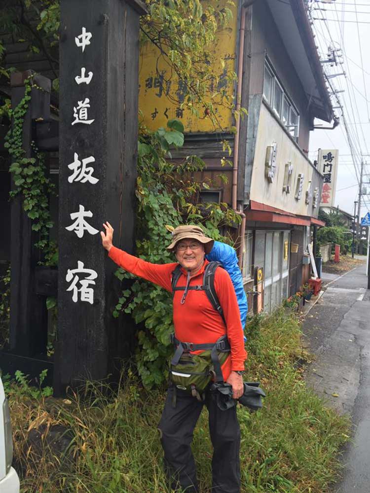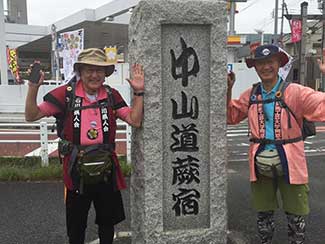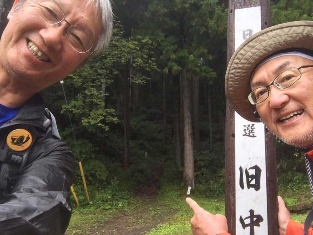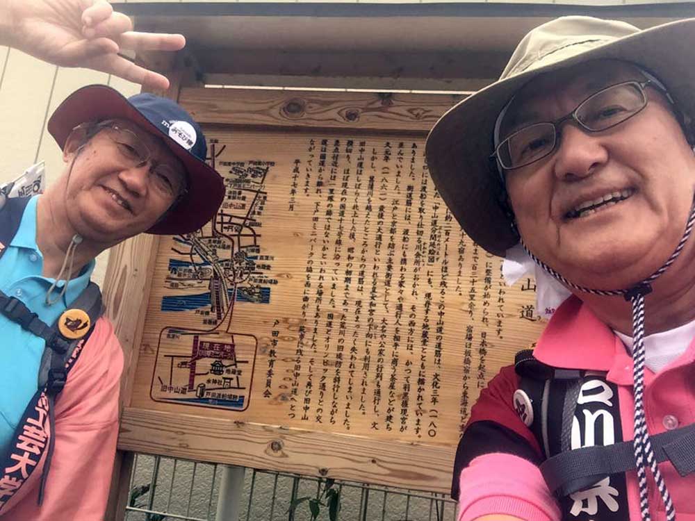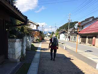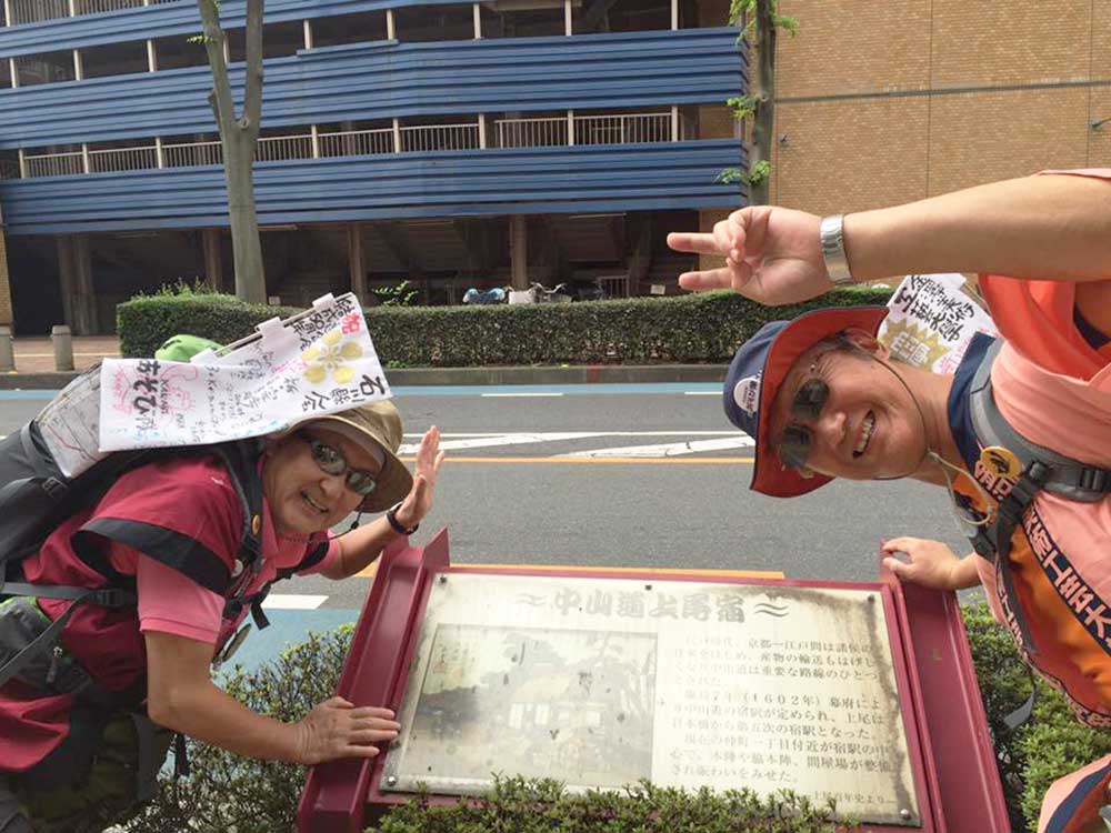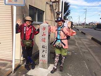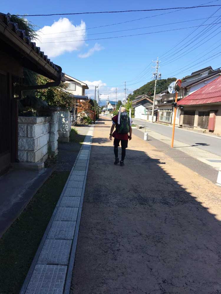 14:00 旧中山道を歩く。今日は昨日と違ってどこも立ち寄らずただただ黙々と歩く。三谷隊員が石田と黒澤のリュックをかわりばんこに担いでくれてホンマに助かった。あんやと〜。我々の姿を見て声をかけてくれる方が多かった、主に年配の女性。全てビデオ撮影をするが誰も嫌がらない、これには驚いた。昨今のぶらり系番組の影響か。