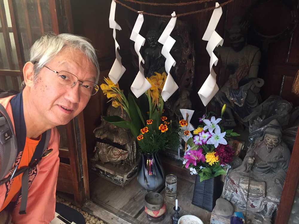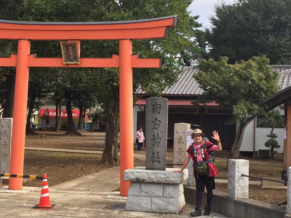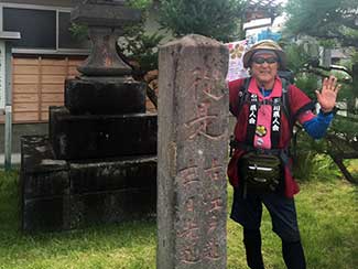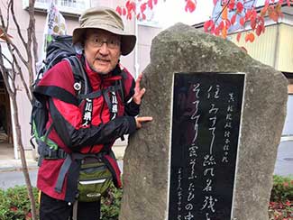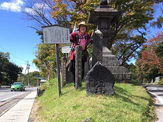 10:00 吹上駅を過ぎると「中山道」道標がなぜか多くなる。昨夜取材を受けた埼玉新聞の新井記者から写真撮影を頼まれる。荒川土手下の「権八延命地蔵堂」前で撮影完了。明日の埼玉新聞に載るらしい。