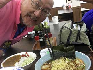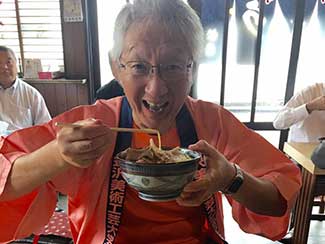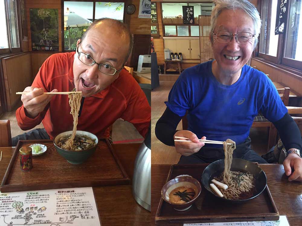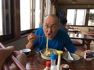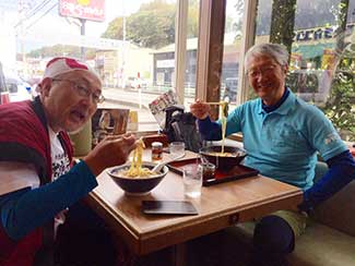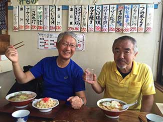 11:30 石田、黒澤共に最後の昼は「8番ラーメン」にしたいと今日も同道してくれている三谷隊員に頼み探してもらう。通り道森本にあった!懐かしい「8」の字のナルト。縮れ麺。美味かった(笑顔)。