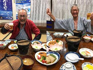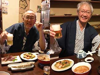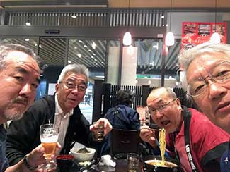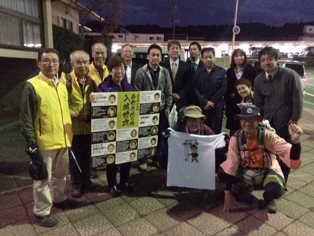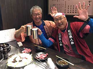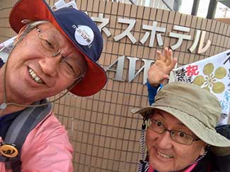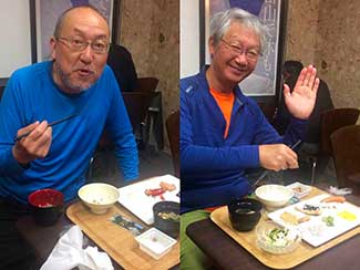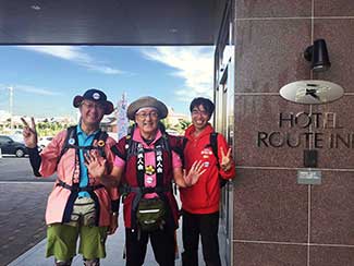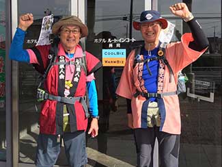 17:45 今日も元気にホテルに到着しました。三谷さんが高岡古城公園に応援に来てくれ合流しました。明日一緒に津幡まで歩きます。今朝から同行の原さんとはホテルで別れました。寒い中応援ありがとうございました!! 感謝感謝です!! 夕食は沖縄料理店です。