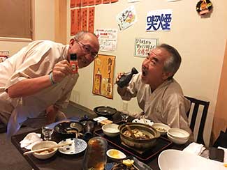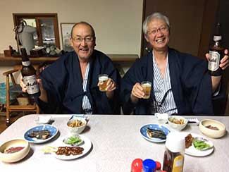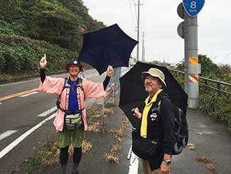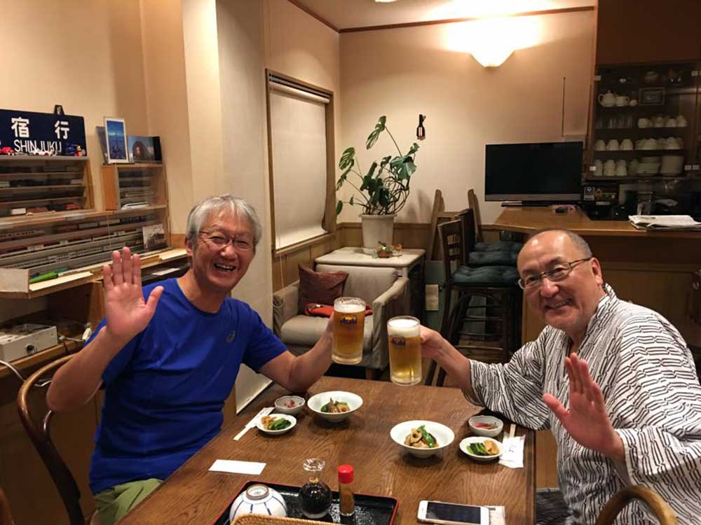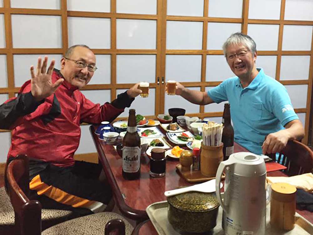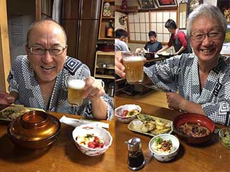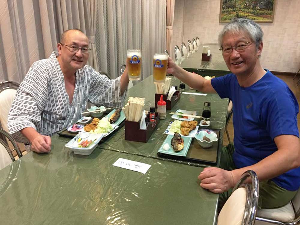 17:45 ホテルクラウンヒルズ高岡に到着。原さん雨中を今日1日伴歩ありがとうございました。最高のナビゲーターであり、サポーターでした。明日もよろしくお願いします!三谷隊員と一緒にチェックインし、夕飯へ。近くの沖縄料理店でビールで乾杯!ソーキそばで腹ごしらえ。