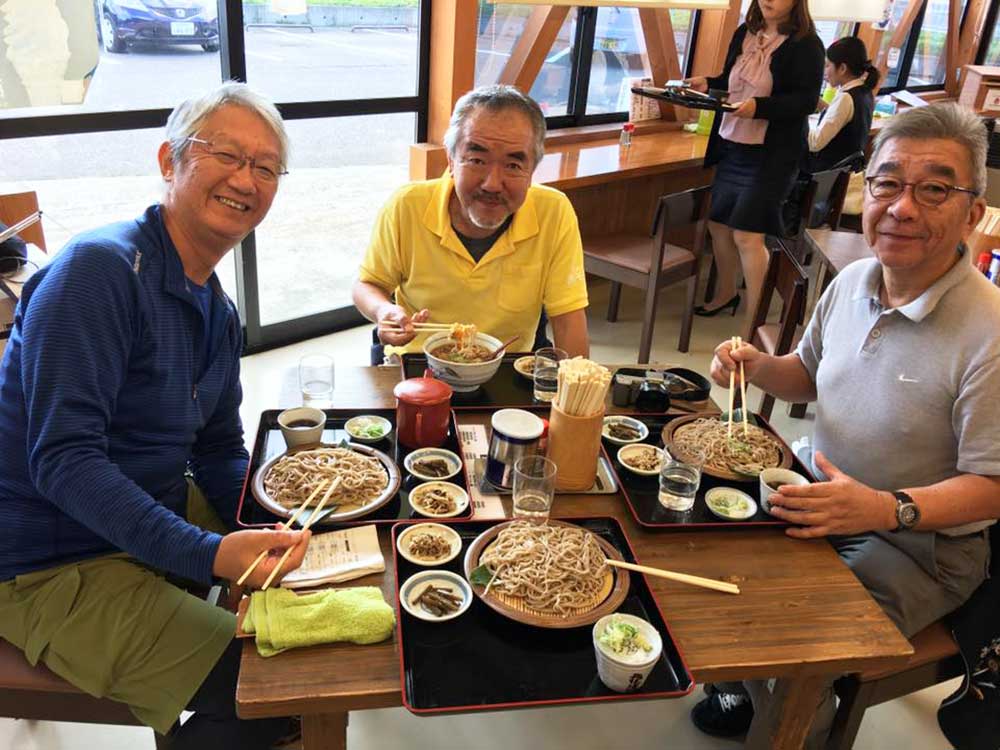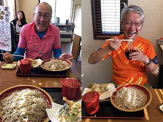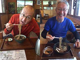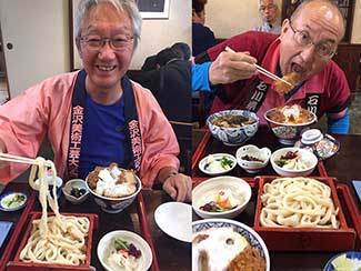12:30 桶川宿の観光センターに到着。昨年訓練歩行で訪問した際のスタッフ木下さん、武田さんと再会。隣の「松屋」という手打ちうどん屋で肉うどんを食す。