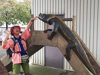 16:30 KANABIあ・そ・び・隊の三谷隊員が金沢から駆けつけてくれ高岡古城公園で再会。ありがとう!!その石碑前で新聞用の撮影。すでにニュースリリースを渡しているので記事原稿は大体書き終わっているらしく、追加取材程度の取材を受ける。原さんのナイス判断で前田利長公の騎馬像の前でも撮影し、どの写真を使うかは明日の掲載のお楽しみ。