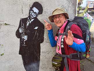 9:00 KANABIあ・そ・び・隊004の三谷隊員が突然ホテルサンルート鴻巣のロビーに現る。ビックリ!一緒に深谷宿に向かうことに。リュックを担いでくれることになり、勿論体力回復のためにお願いする。寒い、パーカーを羽織る。