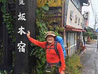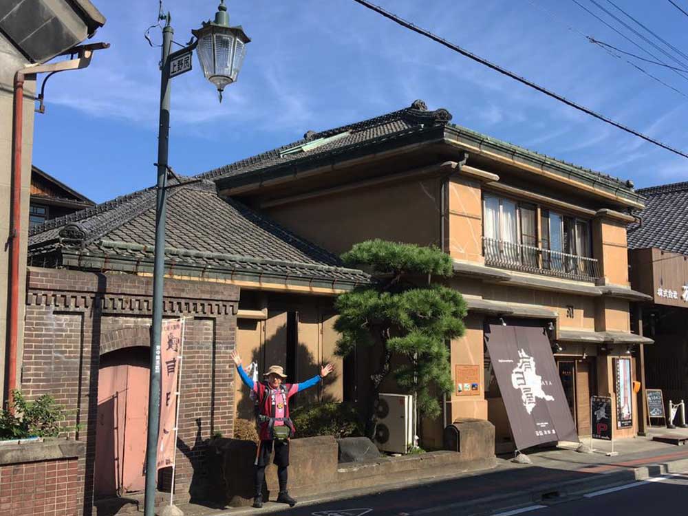 9:00 深谷宿「きん藤旅館」の女将(晩年の森光子似)と記念撮影。今回で3回目の出会い。改めて縁を感じた。ありがとう。足指の痛みも回復しイザ!出発。