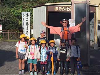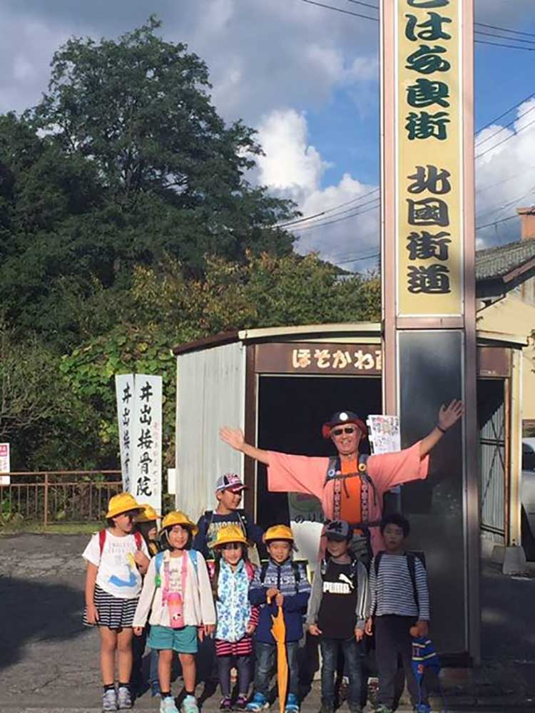 学童の安全歩行を見守るおじさん、おばさんからエールを頂く。「この辺りは今はこんなんだけど、昔は甲斐國武田信玄の家来だった金窪城の城下町だったのよ」って。