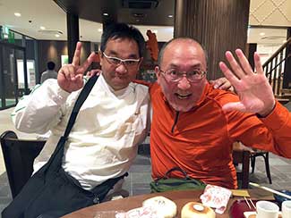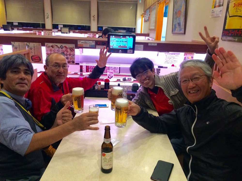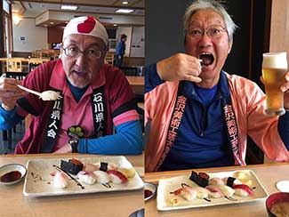 18:00 旅館の食堂に行くとまたまたビックリ。以前市役所のプロジェクトでご一緒した吉田洋さんがいた。FBで聞いていたが本当に来てくれた。ありがとう〜。一緒に夕食へ。近くの回転寿しで無事津幡着の乾杯!いよいよ明日は金沢城入城・・。部屋にいたら、何と!安田薫さんが陣中見舞いに。これまたビックリ!元気ドリンク頂き頑張るぞ!と伝えて感謝。