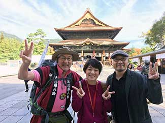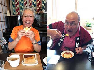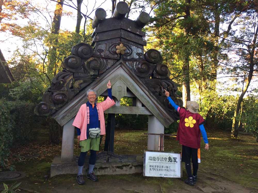 11:00 加賀藩本陣に使われていた長安寺に寄る。記念撮影していたら「竹綱さん知ってます?」と男性の声。偶然にも長安寺の真向かいに実家のある蓑島毅さんだった。彼は竹綱君の仕事関係の知人で昨日のチューリップテレビニュースを見て知っていたものの、今日この時間に我々がここに来ることは知らず全くの偶然だった。この出会いも本当に不思議で素敵な出来事だった。