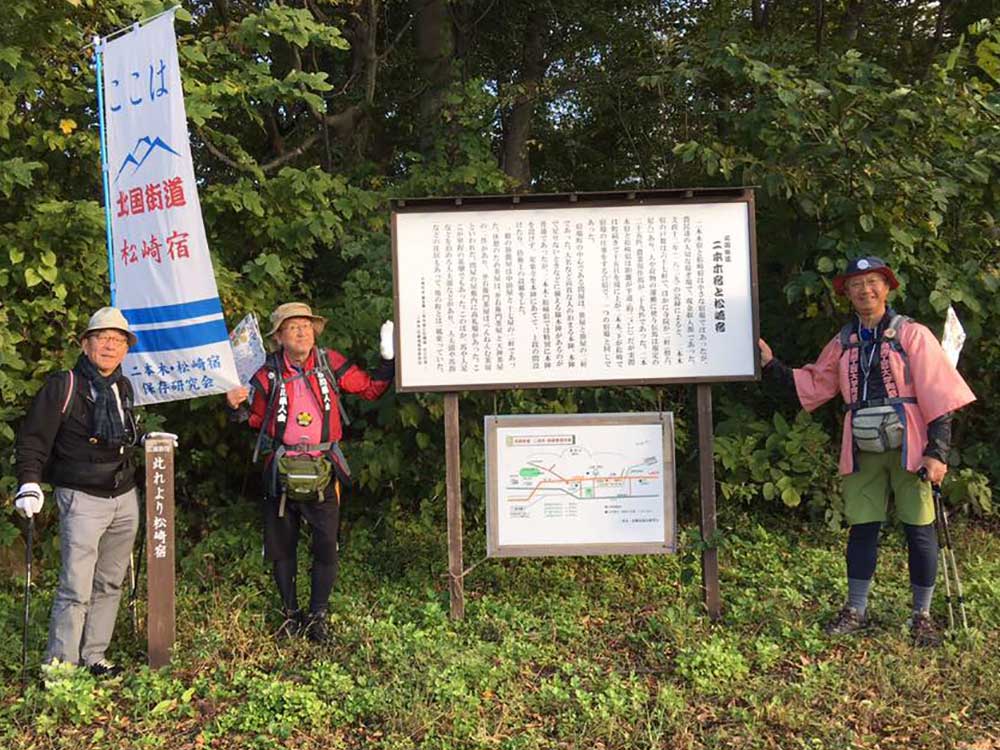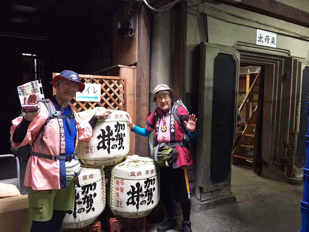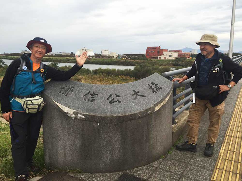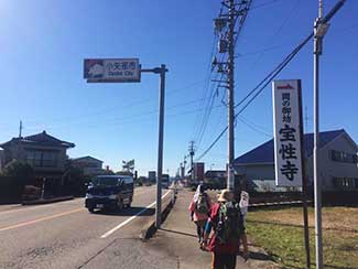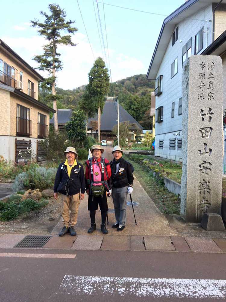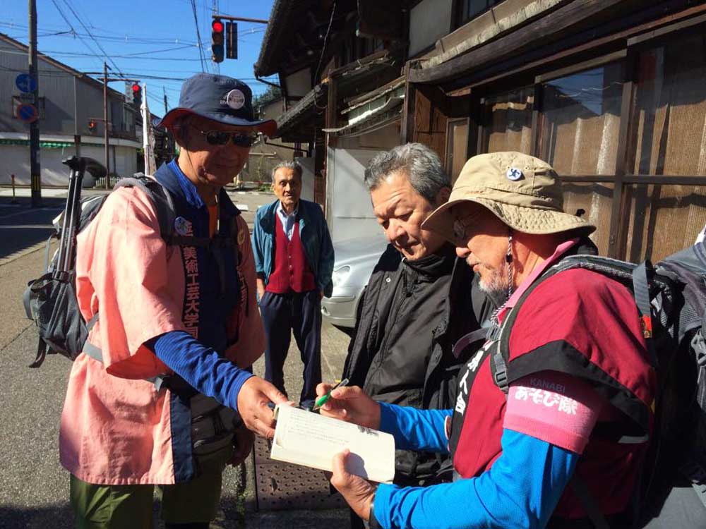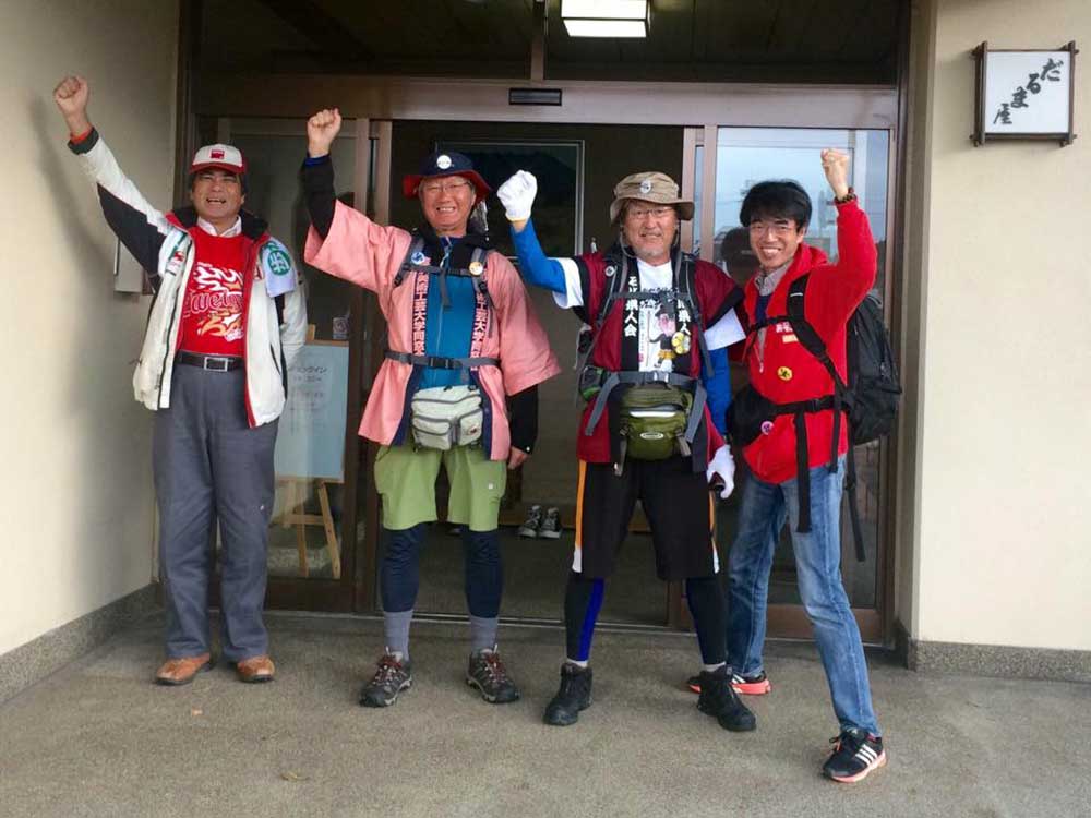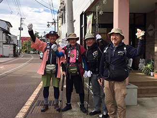 15:00 津幡町健康ウオーキング会のメンバー3人に出迎えを受ける。その会長の福田さんは、私がお世話になっている宮下印刷の宮下会長の高校時代の友人。宮下会長から聞いて倶利伽羅峠まで駆けつけたとのこと。津幡駅前の「だるま旅館」までの十数キロを6人一緒に歩るく。ありがとうございました。感謝。