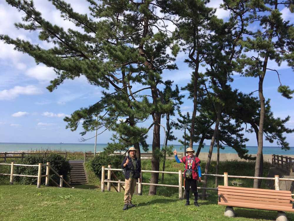 10:00 吉田さんのナビゲーションで花園あたりから旧北国街道(北陸道)に入る。お陰で八田與一(台湾での治水、ダム設計に尽力した水利技術者)の生家や、金沢指定文化財の豪農建築(菊知家)、松並木(往還松)など名所、史跡を見ることができた。