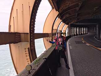 16:20 庄川を渡る。雨が小降りになって来たが風はまだ強し。北陸中日新聞高岡支局の山本記者電話し高岡古城公園で待ち合わせすることに。近くまで迎えに来てくれた。思ったより若く明るい記者だった。