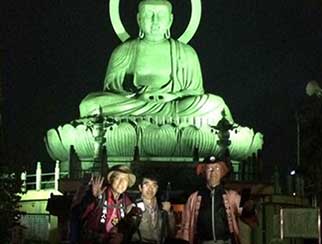 ホテルに入る前に日本三大大仏の一つ「高岡大仏」を見る。ライティングでその姿が浮き上がって見え霊験あらたかに感じた。