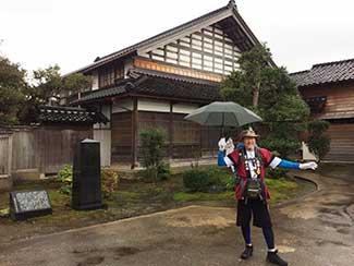 10:00 前田利長公が2年間住まわれた富山城址まで歩く。ここでも撮影。竹綱、原両氏も撮影に協力してもらう。そのまま宿場町の小杉まで歩く。カメラクルーも同道しながら質問を受ける。