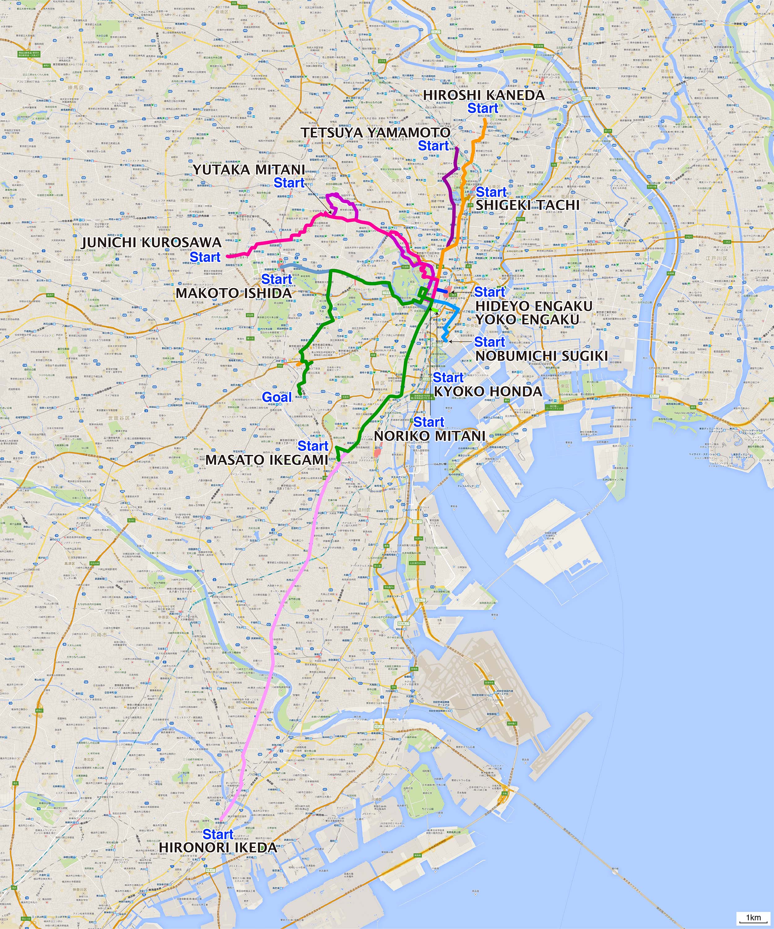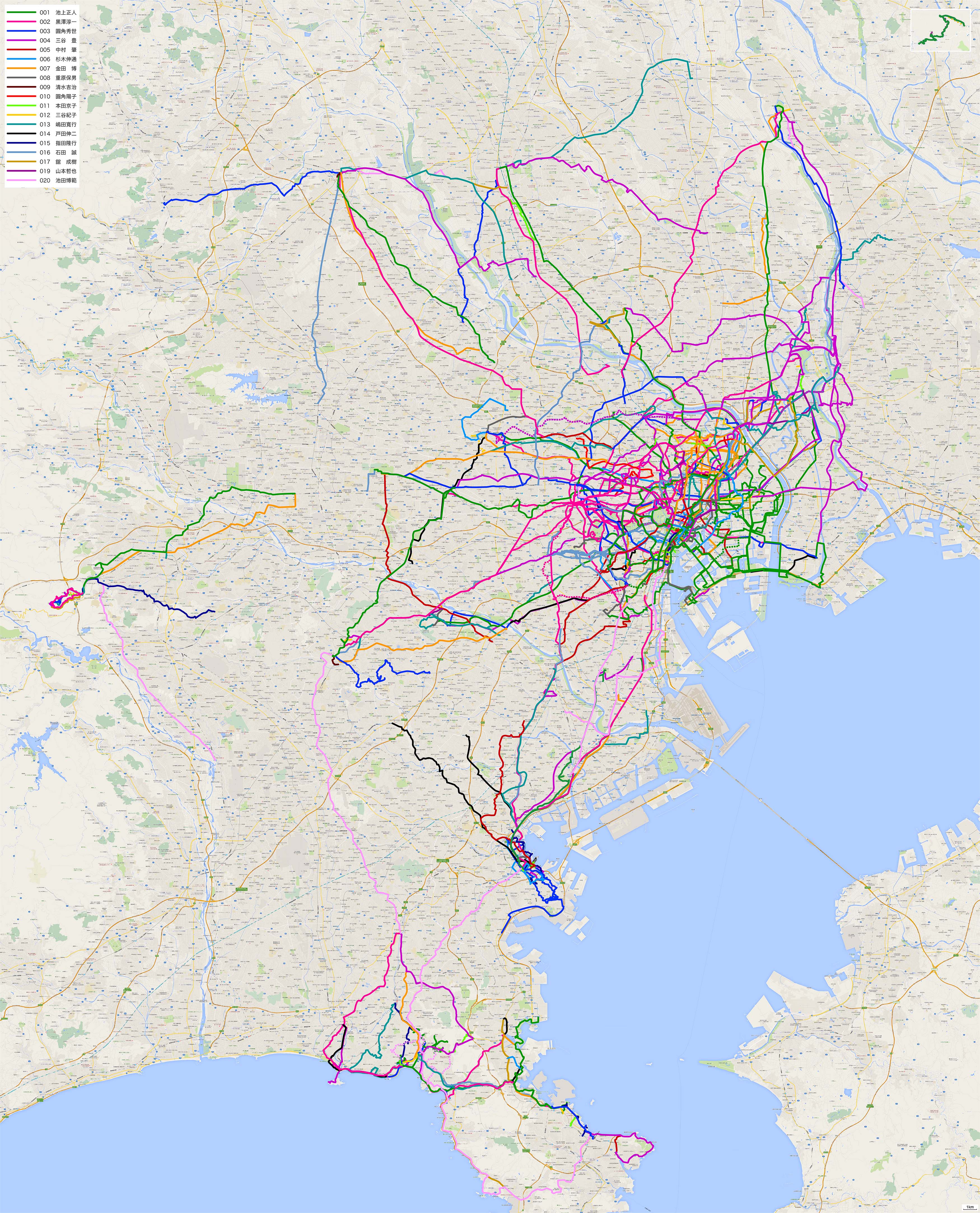 | 001 池上正人 | 五反田駅→しなの路→皇居前広場→常陸宮邸→えびす丸 19.5km | route + | ||||