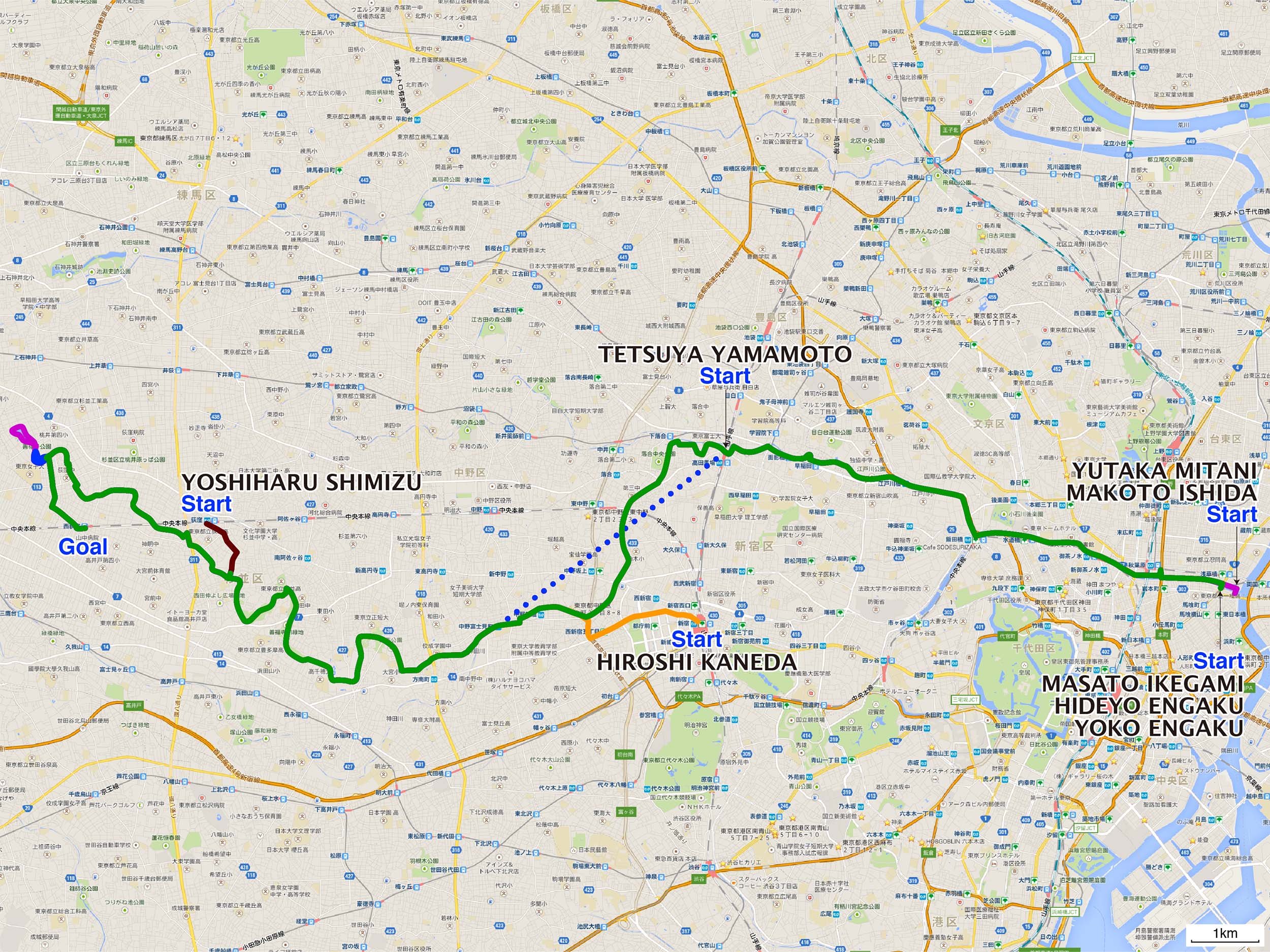 | 003 圓角秀世 | 浅草橋→高田馬場駅・中野富士見町駅→そば処玉川→善福寺公園→戎 22.7km | route + + | ||||