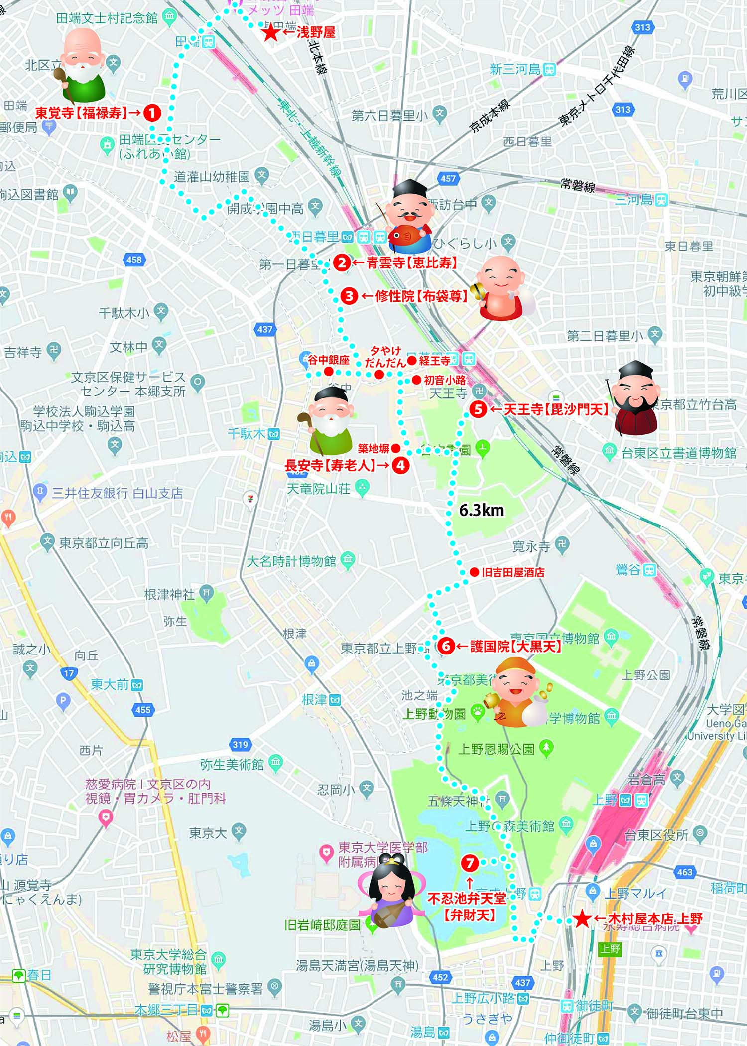 東田端・浅野屋→木村屋本店 上野 6.3km |