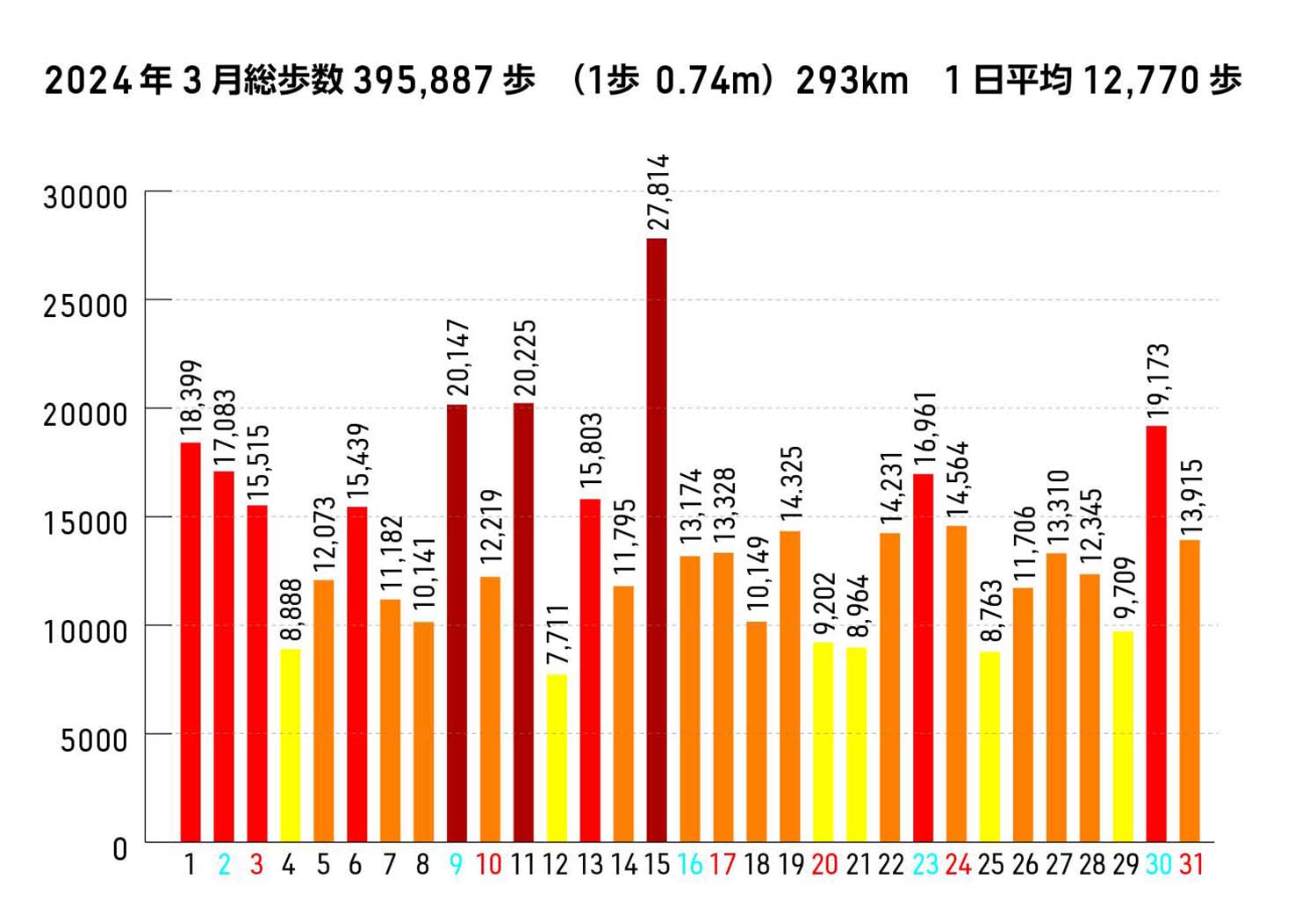 3/1〜31 自宅周辺ほか 計293.0km |